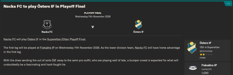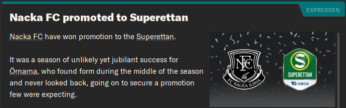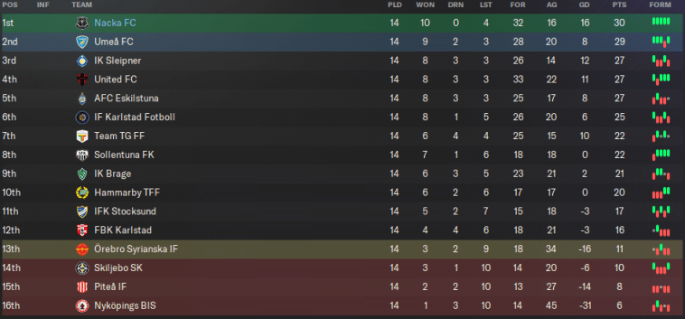As someone who coached Nacka IRL throughout the tiers, I have to say I’m amazed of your flight from division 2 to Superettan within 2 years. Been a joy following 🙂