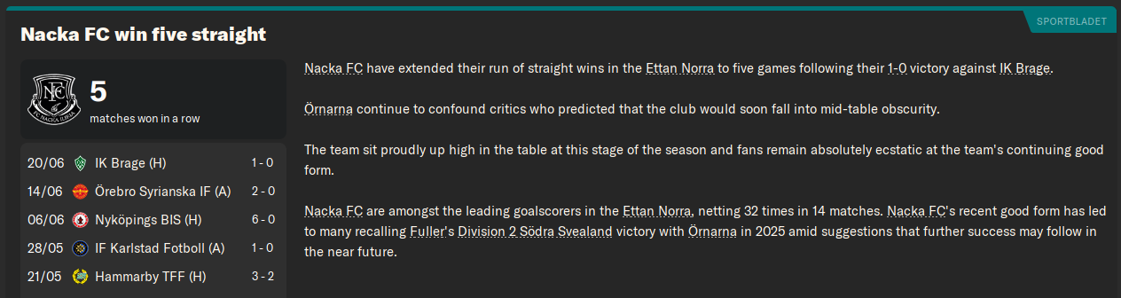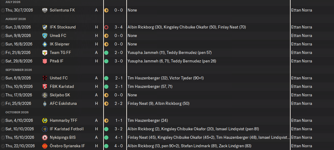 As someone who coached Nacka IRL throughout the tiers, I have to say I’m amazed of your flight from division 2 to Superettan within 2 years. Been a joy following 🙂