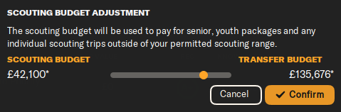 When you’re a newly-professional club, you should still be mindful of not wasting money necessarily, so only expand the scouting range as and when you need to. Once the transfer window closes, switch back to the package that covers players in your nation – or even the one that just covers the surrounding divisions.