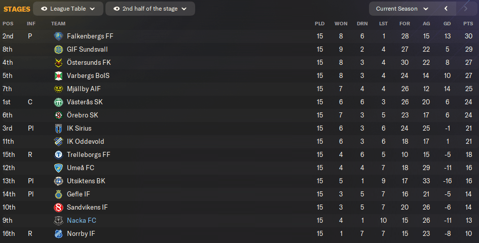 It’s no accident that the Superettan’s least experienced team had serious problems with maintaining consistency and staying calm under pressure. FMers love to write players off as soon as they hit their 30s, but there’s much to be said for having some stable old pros in the dressing room.
