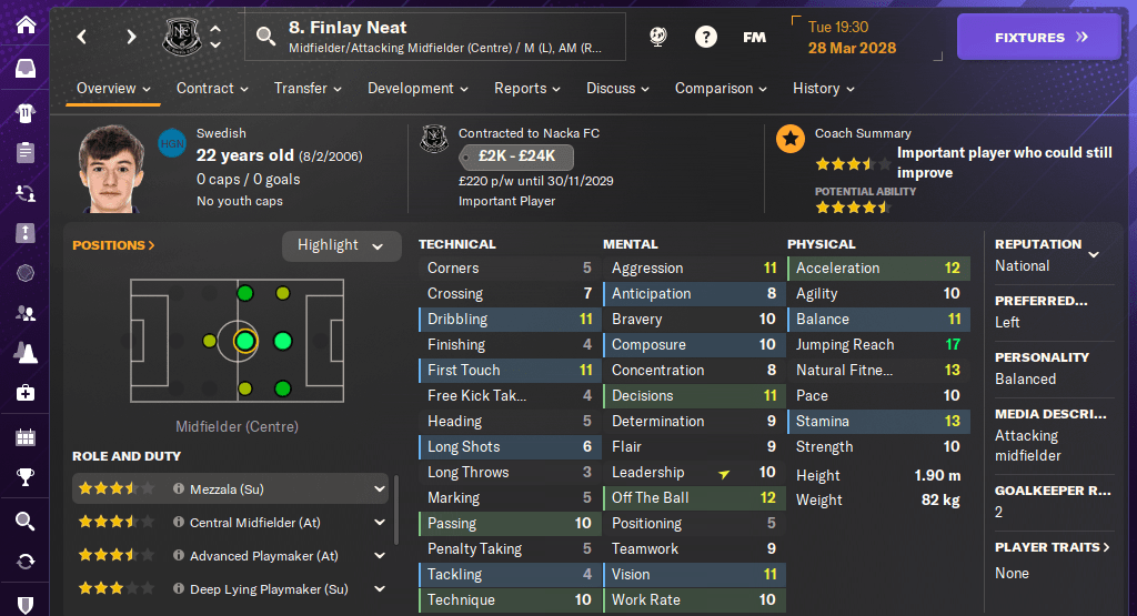 Nacka’s incredible rise on FM24 has also come to the attention of the club’s real-life director (and co-founder) Salih Shala, who posted a lovely comment on my Season 3 summary a few weeks ago. As an FM blogger, it’s always a special and humbling moment when the club you’re managing in the virtual world shows their support in the real world – just like Lyn did on FM19, and Cambrian & Clydach on FM21.