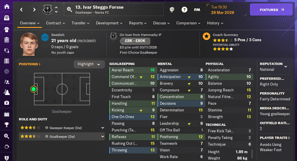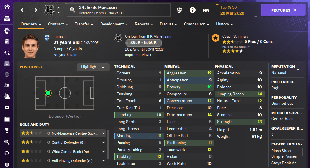 In fairness, Ivar was frequently exposed by one of the league’s leakiest defences. We were particularly soft at centre-back, where Tjeder’s poor tackling and Aksoy’s weak heading made them particularly vulnerable. I will have to recruit significant improvements in that position this winter.