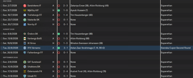 We made an incredible start, shutting out Allsvenskan side Kalmar away from home before Hauzenberger gave us a historic victory! Unfortunately, we followed it up with a disappointing home defeat to Utsiktens.