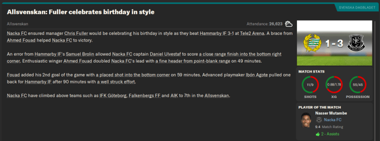 As promised, I’ll be back next week with Part 2, where we’ll find out if Nacka can stay in the Allsvenskan for another season… or perhaps even qualify for Europe? [Don’t get ahead of yourself, Christopher.]