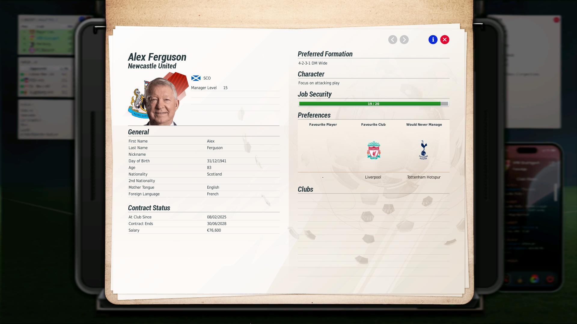 I also saw Sir Alex Ferguson come out of retirement at the age of 83 to manage United… Newcastle United. And apparently, Liverpool are Fergie’s favourite club! Are the developers absolutely sure that they didn’t get Sir Alex mixed up with another Scottish knight of the realm?