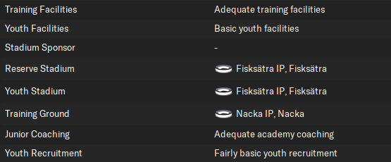 I had better luck upgrading our facilities. Patric wouldn’t budge on our ‘fairly basic’ Youth Recruitment, but he did invest some more money into Junior Coaching.