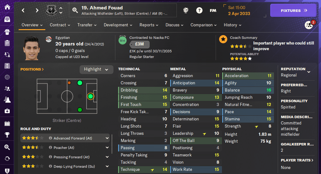 So now our top scorer from last season is looking to leave. Fouad’s contract runs until 2035, so I’m not desperate to sell him if I can help it. But if his miserable attitude turns into miserable performances, or he starts to ruin the club atmosphere, I might have to think again…