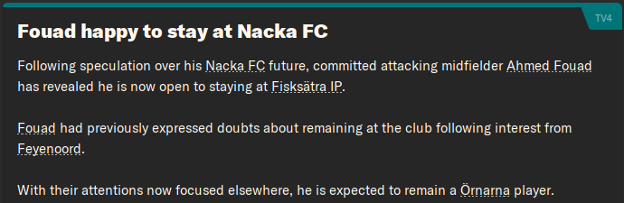 Meanwhile, Fouad had channelled his transfer frustration in the right way – scoring five goals in his first eight matches. All of a sudden, the ambitious Egyptian was now happy to stay at Nacka!