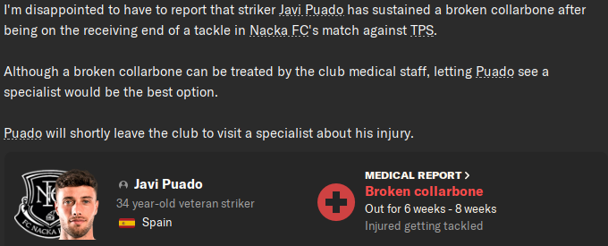 …until he broke his bloody collarbone, ruling him out for the first two months of the league season. This prompted me to sign ANOTHER centre-forward – taking the flamboyant Ronnie Paulsson on loan from Örgryte.