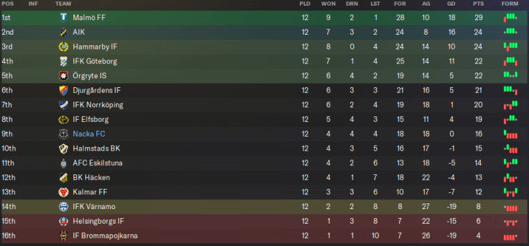 After eight matches, Nacka were in 2nd place – only behind Malmö – and had the last unbeaten record in the Allsvenskan. Happy days…