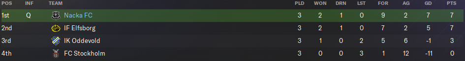 After eight matches, Nacka were in 2nd place – only behind Malmö – and had the last unbeaten record in the Allsvenskan. Happy days…