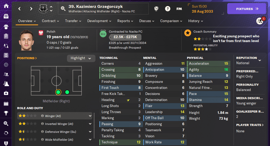 Popów just isn’t it. Yes, he kept six clean sheets in 20 Allsvenskan matches and was voted ‘Player of the Match’ three times… but in those other 14 league games, he shipped 32 goals! The fact that Marc’s coach report says he is “very consistent” and “enjoys big matches” makes me believe that my assistant is having a laugh.