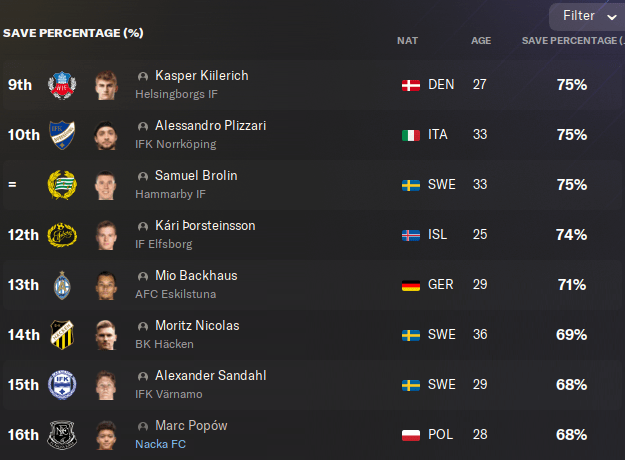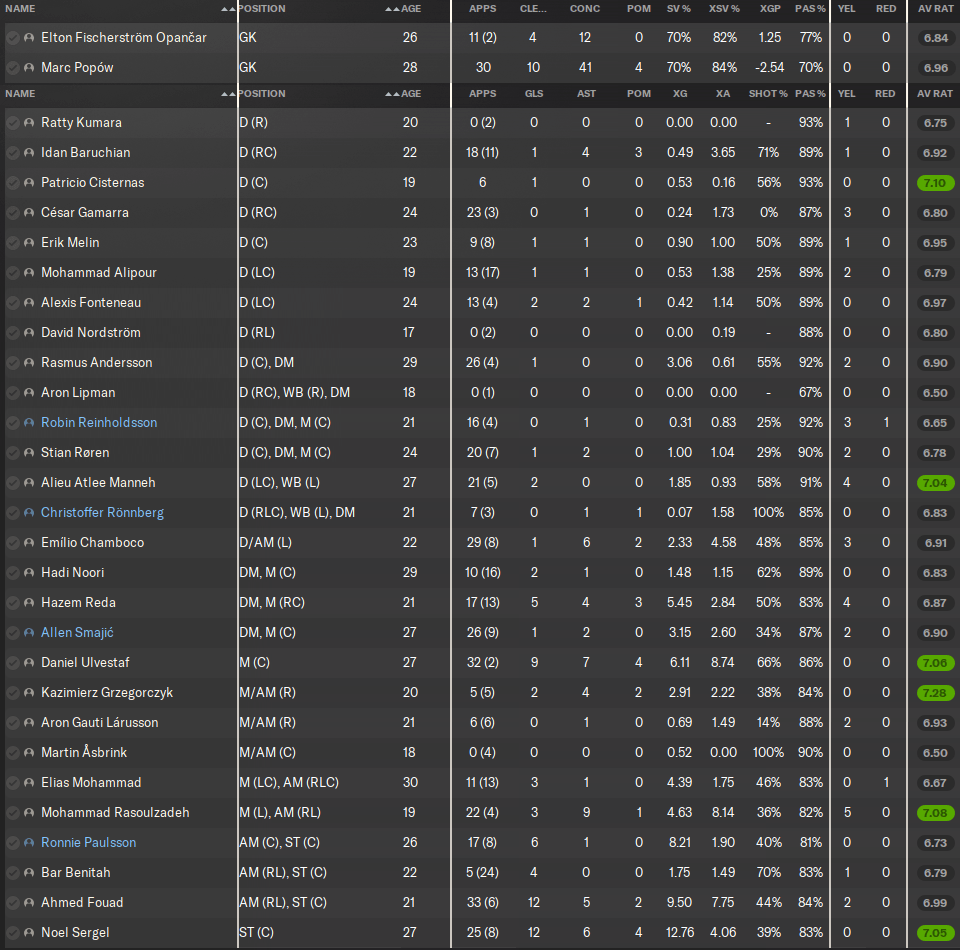 And just like EVERY SINGLE goalkeeper I’ve previously managed on FM24, Marc Popów had forgotten how to be a goalkeeper. Following a sharp drop in form, I lost patience with the Polish clown after a shocking collapse at Kalmar. Elton Fischerström Opančar went in goal for the next few games, though he wasn’t much better in truth.