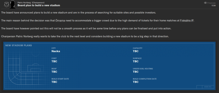 Demand for Nacka tickets is growing. We need a bigger stadium to generate more revenue, thus allowing us to pay higher wages for those players who can take us to the next level. As long as we’re still playing at a tiny lower-league ground, it will become harder to compete with the big boys…