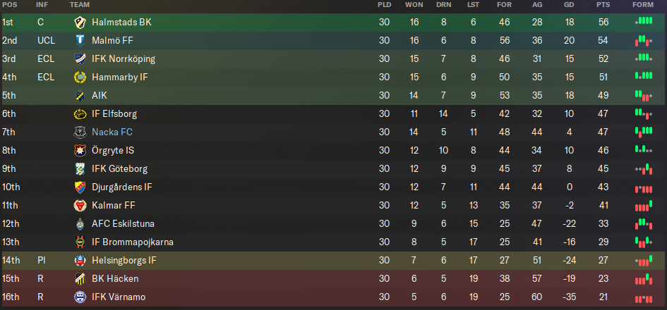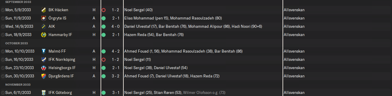 Matches like this make me question whether I still enjoy playing FM. We were at home to Häcken, who were in freefall after failing to win a single league match since May. We dominated possession, created loads of chances… and lost 2-1.