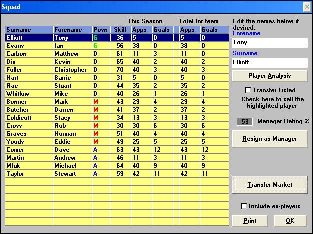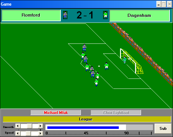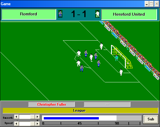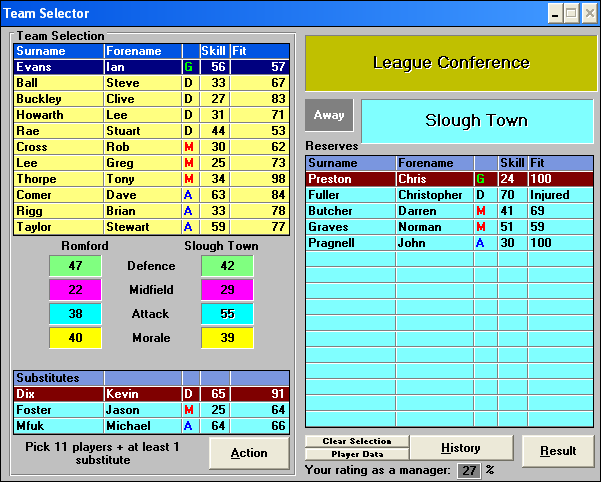 When you launch Simsoc for the first time, you get to choose any team in the Conference (the fifth tier of English football) to manage as your first club. You can also be a player-manager, allowing you to pick yourself for matches in your chosen position.