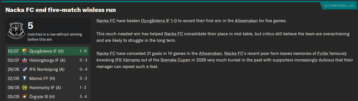 For the longest time, the Swedish press would ALWAYS bring up that time my Nacka beat IFK Värnamo in the second round of the Svenska Cupen in 2028.