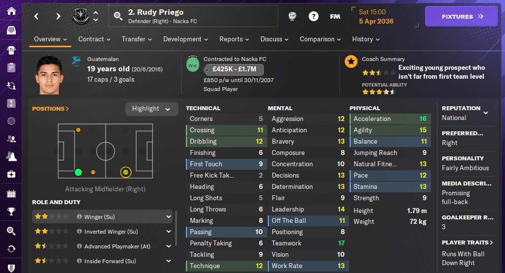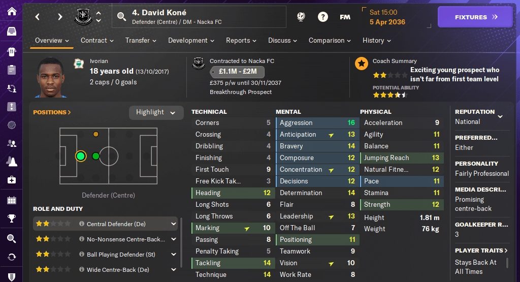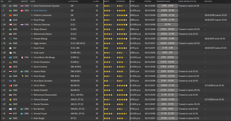 Arvid Hellman is the 15th different goalkeeper I’ve used at Nacka (I wish I was joking). The Nordsjælland loanee is a giant shotstopper with great reflexes, although his concentration is a minor concern. Mind you, I hear he also makes some incredible mayonnaise.