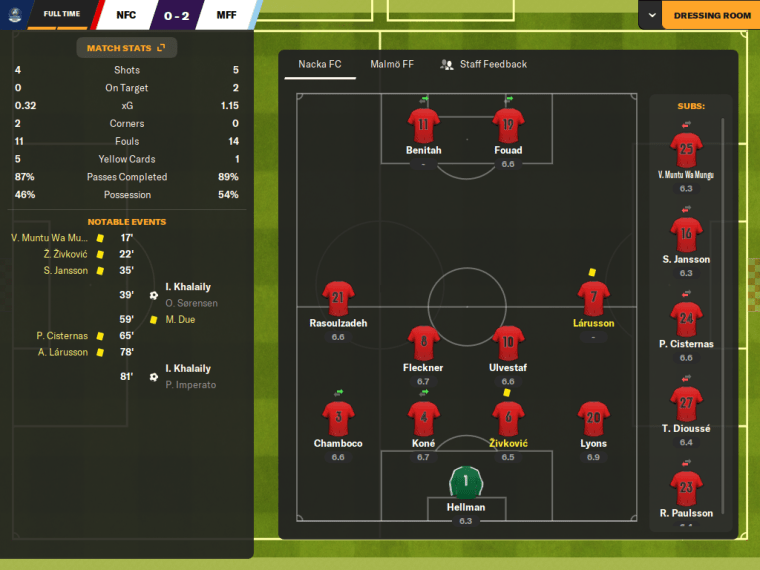 Naturally, Nacka’s fans were as frustrated as I was, and they unceremoniously voted the chairman out of office a few weeks later. His replacement – a nondescript middle-aged Swedish man named Robin – agreed to upgrade the training facilities by way of compensation. I hope he didn’t put Sports Interactive in charge of building those as well.