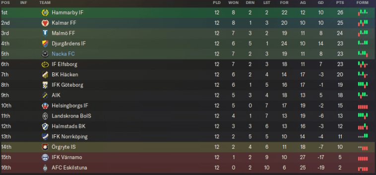 We set our stall out by taking the lead in each of our first eight matches… and winning five of them. Unfortunately, we struggled to see matches out away from home – dropping five points in a couple of frustrating Stockholm derbies, and then three more at Elfsborg.