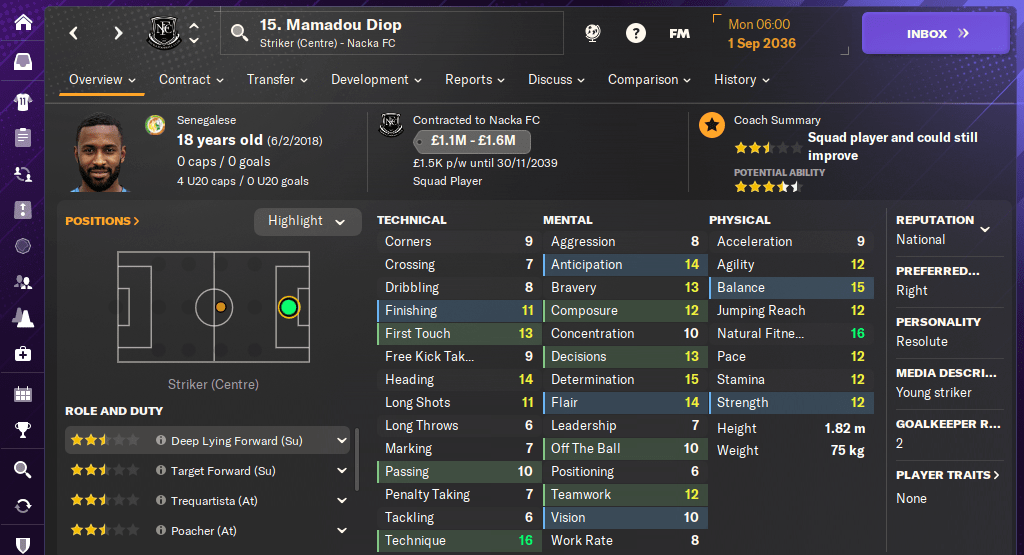 Malian right-back Dianka Sanou has also gone on loan, but he’ll get top-flight experience straight away with relegation-battling Norrköping. He’s resolute and has some very strong mental attributes for an 18-year-old, so don’t be shocked if he breaks into our starting line-up next year.
