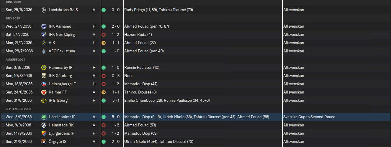 The nerves of being in championship contention finally got to us at Värnamo, who were bottom and already doomed to relegation. A slow start left us 1-0 behind at the break… but after switching to a 4-2-4 and throwing Fouad and Ronnie Paulsson up front, we turned the match on its head.
