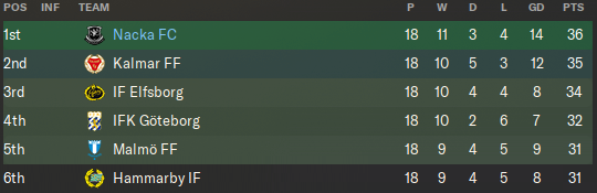 After building up Nacka FC for the past 12 years, the Allsvenskan title is now firmly in our sights. We’ve enjoyed a good start to the 2036 season, setting us up nicely for a championship challenge, as well as a long-awaited return to the Conference League.
