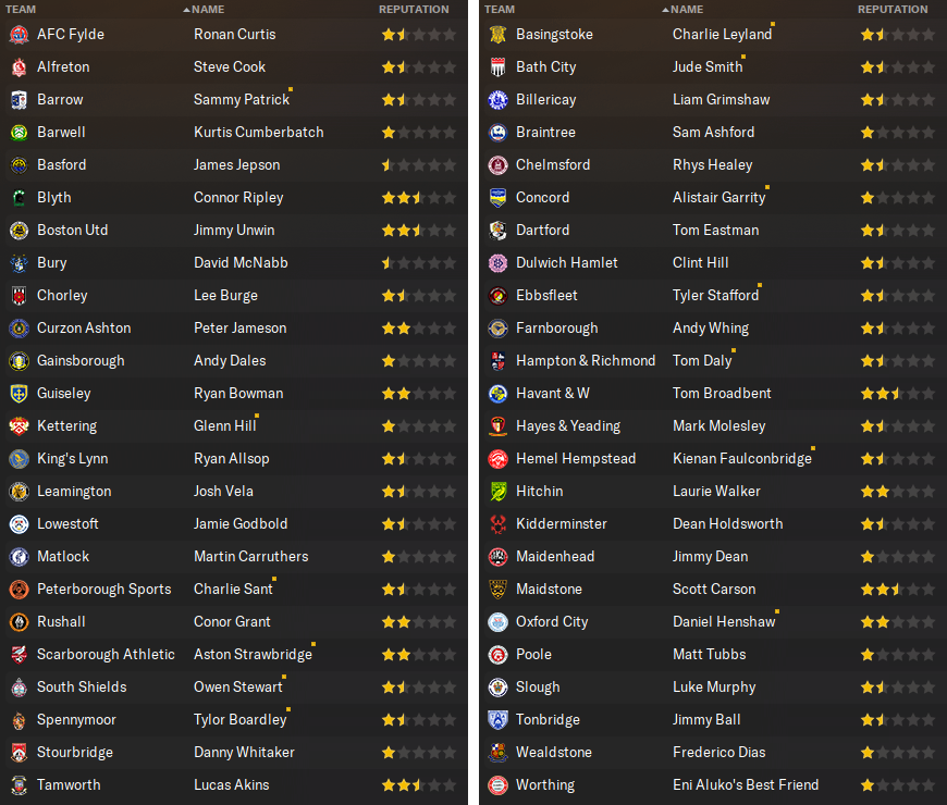 Also, FM’s AI is neither dumb enough nor smart enough to give managers jobs purely based on where they were born. Kettering’s manager from my previous example was actually born in Oldham – nearly a 3-hour drive north-west.