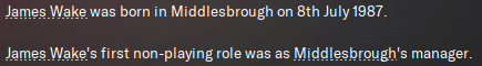 James Wake was born in Middlesbrough. But since when has being from the area been enough qualification to manage your hometown club? Chris Rea is also a Middlesbrough boy, and yet I highly doubt he was on the shortlist to replace Michael Carrick this summer!