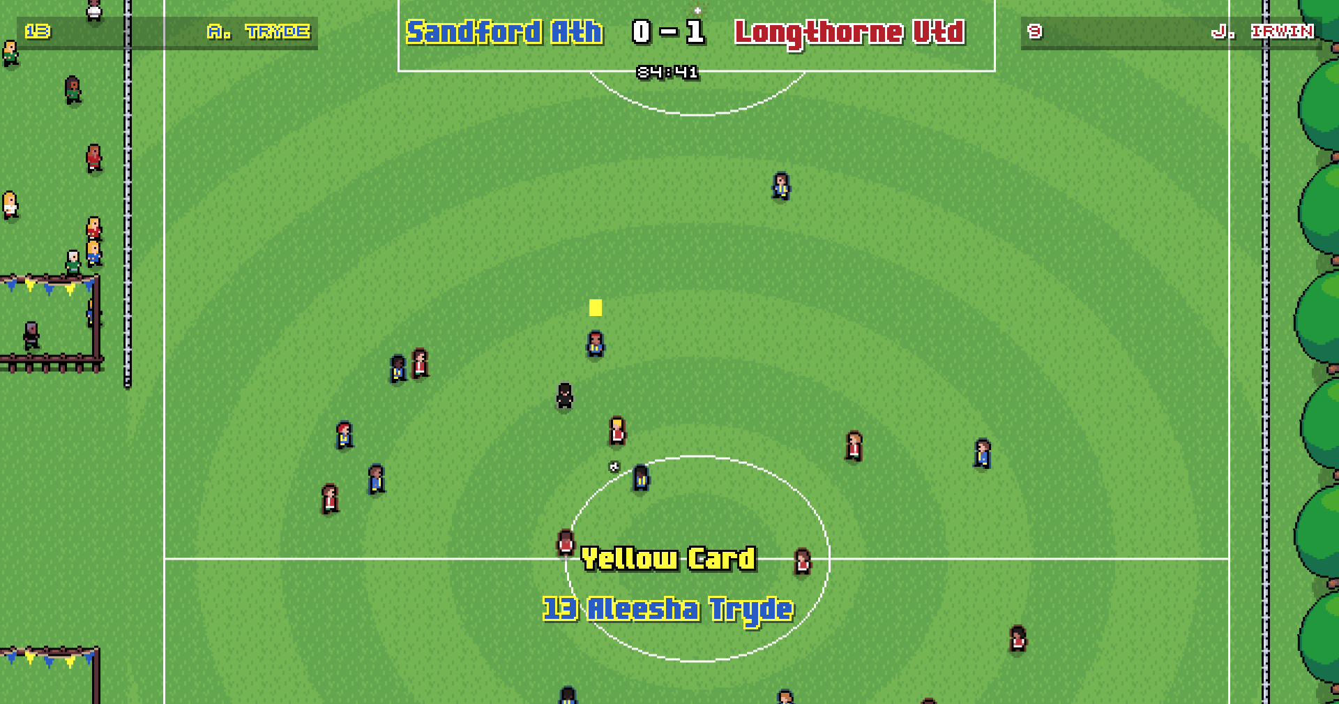 In terms of the football aspects, the inevitable comparisons are with the Sensible Soccer series – specifically Sensible World of Soccer. Its 8-bit graphics, bird’s-eye viewpoint and simple gameplay have inspired scores of imitators such as Championship Soccer… but no Soccer Mommy videos. Yet. To be honest, I’m not sure she even likes soccer.